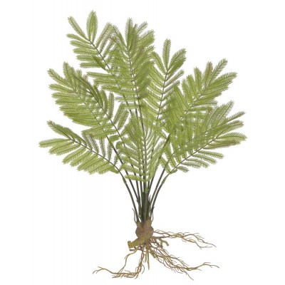 Roślina jest wykonana z trwałych, ale delikatnych dla dotyku materiałów, które doskonale naśladują prawdziwe paprocie, dzięki czemu wygląda niezwykle naturalnie. Część pośrodku rośliny, nazywana rhizome, jest szczegółowo odwzorowana, dodając autentyczności. Każdy liść został precyzyj wykonany z dbałością o szczegóły.
